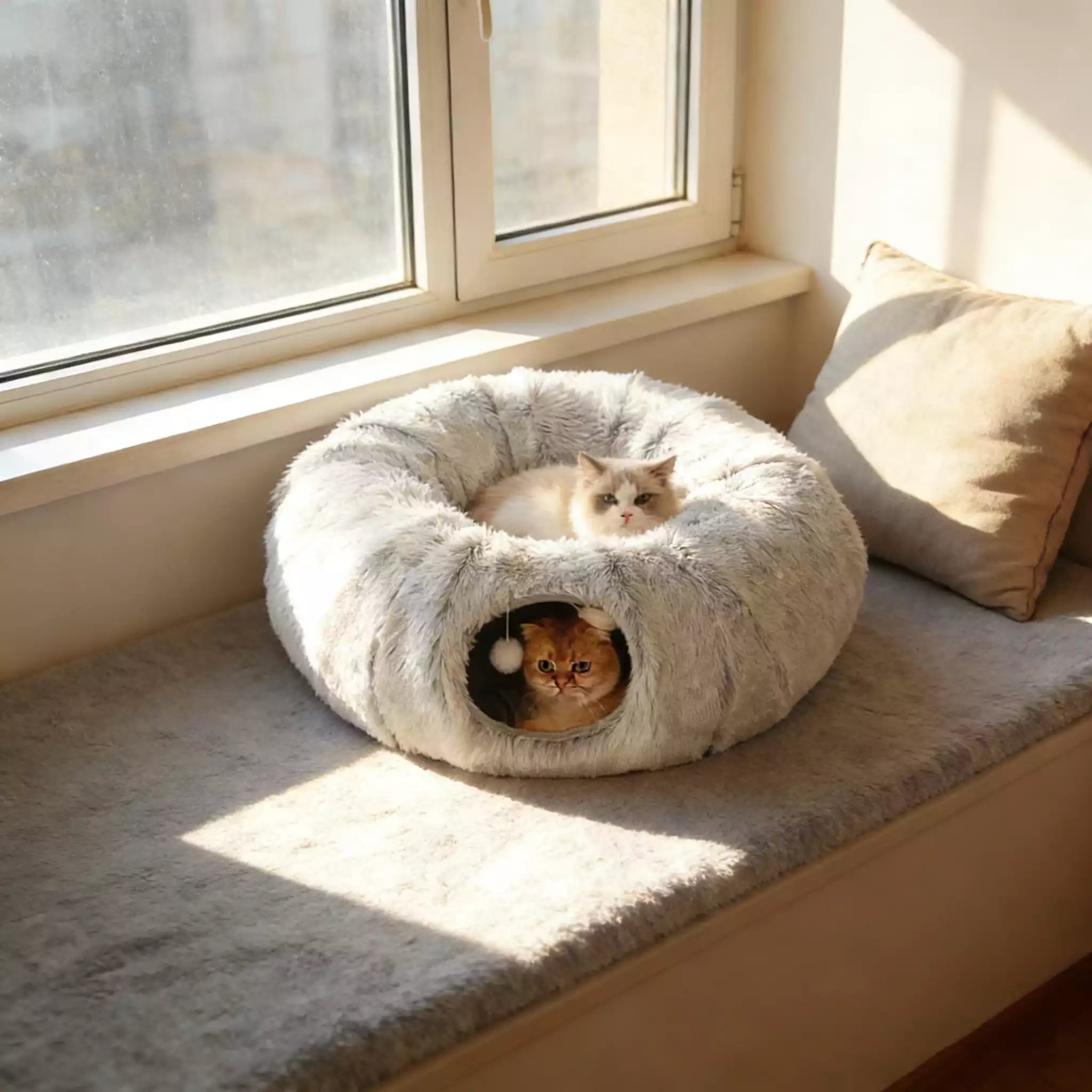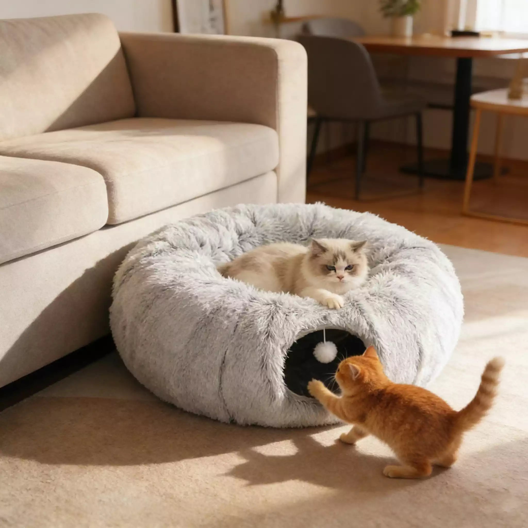 Indulge your feline companions in the ultimate cozy-play retreat with our Plush Cat Bed Tunnel Nest—the perfect blend of comfort, fun, and functionality for indoor kitties!